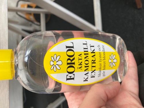 BILDER: Här ser ni mitt hår före, undertiden och efter EN behandling med eorol kamomill extrakt. Läs nedan mitt tillvägagångssätt och åsikt. Ni ser även på bilderna på flaskan ungefär hur mycket produkt som går åt.💁🏼♀️🌸💃 Jag är en naturligt ljus blondin, men visst ”fuskar” jag och gör slingor på salong 2-3 ggr/året. Nu var jag vid det läget då det va 4 månader sedan senaste slingningen och utväxten nått ca 5 cm, helt klart inte den snyggaste synen! Men det är sommar och sol och visst känns det lite onödigt att lägga massor med pengar på en professionell hårslingning/färgning just nu, roligare att vänta tills efter sommaren ju! Men vad skulle jag göra undertiden för att hjälpa solen på traven? Då hittar jag detta kamomill extrakt, med 2% väteperoxid (lagom starkt tänkte jag, då jag vet att min frisör använder 6% på mig på salong, och 9% för mörkare hår) för endast 55kr! Dags för en testrunda!: - Jag följer anvisningar och applicerar ”kamomill vattnet” (för konsistensen är precis som vatten) på bomullstussar och stryker/trycker lätt mot utväxten. Jag börjar i benan och sen sätter jag upp håret och kör ”runt om” hela huvudet - så att jag kommer åt allt det som syns när jag har uppsatt hår, så inte bara överhåret täcks. Sen släpper jag ut håret igen och kör bena för bena, men jag duttar bara på ektrakt på den 5-6 cm mörka utväxten, för att undvika att skada det redan blekta håret. - Det står att man ska låta produkten sitta kvar i håret tills nästa gång man tvättar det, men jag vill inte sitta med det för länge, ifall det kommit lite extrakt på det redan blekta håret och det skulle börja slita där. Så efter ca 2,5-3 h sköljer jag ut det. - Resultatet är över förväntan! Visst finns min utväxt kvar, men den har suddats ut avsevärt och den före detta gula ”brassy” utväxten har förvandlats till en softare blond nyans. - Men!Jag skulle nog rekommendera att lägga i ett silvershampo/silverinpackning efteråt för att få en ännu snyggare blond färg.🌸🌸🌸 #tävling