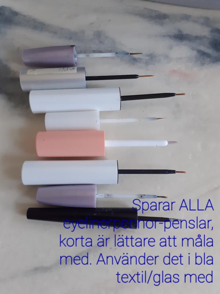 Testat många olika färger o gillar att de håller så länge o har bra kvalitet! Fick en fråga om vad jag använder när jag målar motiv. Jag behåller alla eyeliner penslar, eyeliner pennor och även vissa läppglans-penslar till mitt nyfunna nagelpysslar intresse! Varför? Jo, i mitt hem har det pysslats i årtionde. Många små händer har lättare att hålla i de mindre borstarna. Rengör dem o återanvänd dem! Jag tycker de är toppen att använda till pilleri-detaljer! Som ni ser på bilderna, kvaliteten på eyeliner penslarna är mer hållbara än de vanliga penslarna!! De håller bättre o längre! På bilden är de små blommorna målade med änden på en knappnål! Doppa o gör en prick, vill jag måla med akrylfärg går det bra med vanliga penslar men målar jag med nagellack så är det lättast med en kul-formad ände. #tävling #Evastipsotrixonaglar