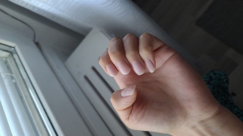 Dock en aning ojämnt i hur många lager som behövs för täckning. På bilden har jag två lager färgad lack ( O•P•I på lillfingret) och ett lager essie gel couture top coat. De andra färgerna är essie 495 forever family (vinröd i 3 lager) och essie 488 daring damsel (guldig i 2 lager). Jag har väldigt mjuka naglar och då jag sitter i rullstol, slits nagellack mycket, speciellt på tumme (syns inte här), pekfinger och långfinger. Dessa lacken har nu suttit i 7 dagar och så länge brukar mina lack definitivt inte hålla. Oftast går det sönder redan första dagen, så jag är positivt överraskad. - Inlägget skapades 1 årBetyg: 5 av 5Verifierad köpare