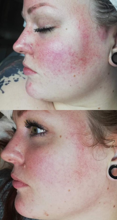 Finns inte ord nog för hur bra och prisvärd den här produkten är. Haft rosacea i närmare 15 år. Översta bilden är innan användning och nedersta bilden är efter BARA 6 DAGAR med kvällsapplicering. Så sjukt nöjd. Kan inte leva utan sulfactil. - Inlägget skapades 2 år