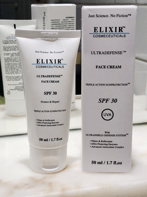 En dagkräm som gör dig "yngre", reparerar, återfuktar och SKYDDAR! Vad mer vill du ha?? Elixir Cosmeceuticals är utvecklad av norska hudläkare i Norge, där serien blivit ledande inom cosmeceuticals. I Sverige sägs den vara ”Dr. Obagis lillasyster (alltså ZO Skin Health), kul för det är riktigt bra produkter. Alla aktiva ingredienser i produkterna har en effekt som är dokumenterad genom forskning. Ingredienser är tillexempel A-vitamin, glykolsyra, antioxidanter och enzymer. Elixirs filosofi är att bibehålla och förebygga framtida skador. Dessutom finns skräddasydda hudprogram som anpassas efter hudtillstånd inte hudtyp. Smart eftersom huden ständigt förändrar sig. Väldigt aktiva produkter, därav namnet cosmeceuticals. Elixir ULTRADEFENSE SPF 30 passar de flesta hudtillstånd. Är fuktighetsgivande och har ett trippelt skydd mot UVA/UVB-strålar. Förebygger och reparerar solskador. Första solkrämen i Skandinavien med reparerande enzymer! En unik kräm med trippel skydd. Innehåller både UVA/UVB- filter, en mix av olika antioxidanter och DNA- reparerande enzymer. Enzymerna ska reparera tidigare solskador och saktar ner åldringsprocessen i huden. Krämen innehåller liposomer så att de aktiva ingredienserna kan tränga djupare ner i huden för maximal effekt. Studier visar att sammansättningen i denna kräm reducerar solskador med 50% själv utan solkyddsfaktor. Med SPF 30 i tillägg ger denna kräm trippelskydd. (Wohoo!!) Jag ÄLSKAR denna! Går snabbt in i huden och perfekt som makeupbas. Det enda dåliga är att den har tagit slut...1 produkt i inlägget En dagkräm som ALLA bör ha!384 visningar - Inlägget skapades 6 år