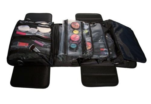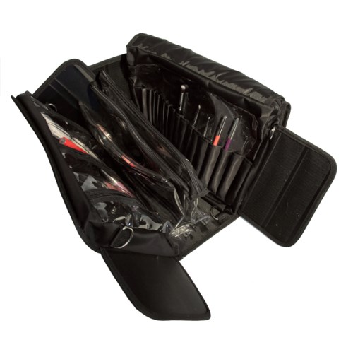 En slitstark men ändå lätt, rektangulär nylonväska för all din makeup och verktyg. Interiören har stora tydliga plastfickor med dragkedja för makeup och hudvård, underavdelningar och små fickor med blixtlås för att organisera, samt ett speciellt fack för penslar med skyddsplast.