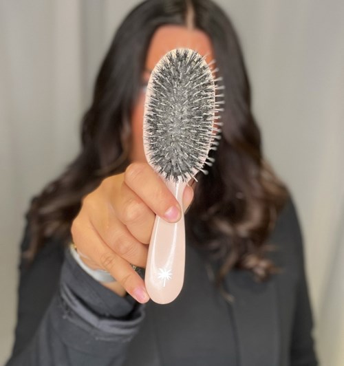 Nylonpiggarna är längre och stimulerar skonsamt hårbotten. De hjälper också till att reda ut håret, samtidigt som vildsvinpiggarna fördelar ut talg.