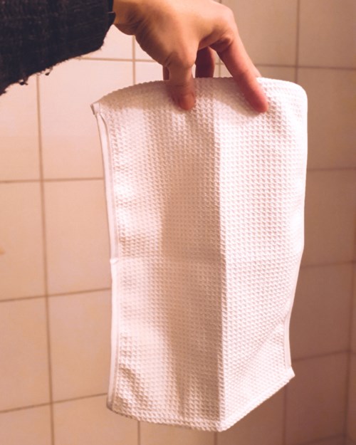 Mjuk ansiktshandduk tillverkad av våffelvävd mikrofiber