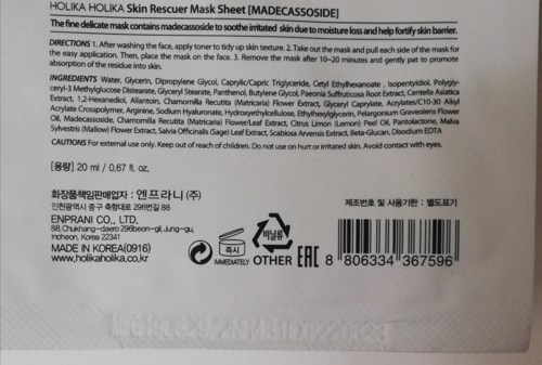 Holika HolikaSkin Rescuer Mask Sheet - Madecassoside 20 ml