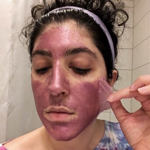 Skimrande, lila peel-off mask, återställer och avgiftar huden