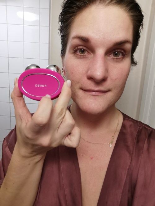 Tittat på denna länge! Läst mkt om just mikroströms apparater så kollade på denna stora eller FOREO bear mini och sen såklart den kända OG NuFace. Valde denna då jag läste att denna var starkare. Det finns 5 olika intensiteten och jag började med 2 och jobbade mig upp till fullstyrka inom en vecka. Använt den Varje morgon i en månad nu. Den ska strama upp din hy och ge dig ett spänstigare resultat. Jag har använt denna utan appen då jag tyckt det funkat bra och tycker den är lätt att använda o finns Youtube klipp ifall man vill ha tips hur man ska använda den. Tar ca 3 min o jag gör det direkt innan rengöring o serum mm. Torkar av ansiktet med en rondell med ansiktsvatten för att få bort eventuell olja o sen lägger jag på en ultra ljuds kräm som man måste ha för att hjälpa till att leda strömmen. Funkar inte med ngt annat direkt för ska vara en produkt som hjälper till att leda strömmen. Såklart deras egen produkt serum serum funkar det är den ju gjord för men den är svindyr... Det står också att Anti-Shock System™ gör behandlingen smärtfri Vilket jag inte riktigt håller med om då jag första gångerna jag använda den, med appen, fick små stöttar, inget farligt! Men reagerade ju för aldrig använt en sån här apparat förut så aldrig känt det o var inte beredd men detta försvann ju mer van jag blev Men använder du appen så mäter den hudens tolerans av elektricitet och anpassar automatiskt intensiteten. Men funkar lika bra utan appen. Använt I 1 månad o inte behövt ladda än. Tänk på att inte ha blöt hår, gå upp i hårfästet när du har blöt hår för då får du en rejäl stöt😅 Men till resultatet! Jag tycker faktiskt mina rynkor på halsen o mina smile lines blivit mindre o likaså rynkorna i pannan men annars ser inte jag så stor skillnad. Vet att man måste använda denna ca vara ann dag framöver om man vill behålla eventuellt resultat så kommer fortsätta o uppdatera här senare #tävling