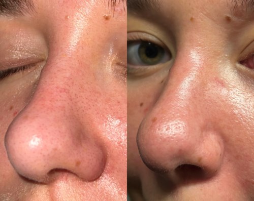 Jag har som #LYKOINFLUTESTER fått prova #FOREO Kiwi! Min hudtyp är kombinerad med fet t-zon och normala kinder. Mina porer på näsan blir lätt igentäppta och jag får varje månad tömma dom. Jag har inte pormaskar per-se, men det som kallas sebaceous filaments. Alltså, död hud, olja och smuts som fastnar och syns hos folk med lite större porer. Men inte nu längre! Jag har aldrig trott på dessa sugprodukter - geggan i mina porer är för mjukt och jag vet själv hur man får pressa som en tok för att tömma porerna… hur ska lite vakuum rengöra mina porer?! Jag vet inte vad det är för magi, men #FOREO skapar det. Efter att ha tagit en varm dusch samt exfolierat ansiktet satte jag igång på näsan. Och till min förvåning så hade MÅNGA porer totalt rensats med ett svep av Kiwin! Jag svepte med maskinen över hela näsan, passade även på att tömma en liten plita jag hade på näsvingen för att utmana det steriliserande LED-ljuset (spoiler-alert, plitan var helt borta dagen efter!). Maskinen tömde ca 80% av alla mina porer på näsan och jag var mållös när jag tog en titt i munstycket. Det var fullt av allt gojs som tidigare ockuperat mina porer. På bilderna ser ni bild på munstycket, samt en bild där jag använt en tops för att få ut det geggan. Jag är mer än nöjd och produkten överskred mina förväntningar Det enda negativa jag kan säga är att jag lätt får blåmärken av den. Fick lätta blåmärken på pannan där jag använt maskinen, trots att jag bara gått över området en gång. Använder den nu enbart runt näsa och haka. Se mina före- och efterbilder i inlägget…! - Inlägget skapades 1 årBetyg: 4 av 5Verifierad testare