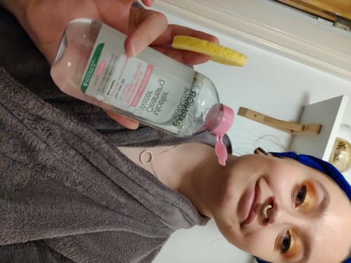 Applicera Garnier Micellar Cleansing Water på ansikte, ögon och läppar med en bomullsrondell. Behöver inte sköljas av.