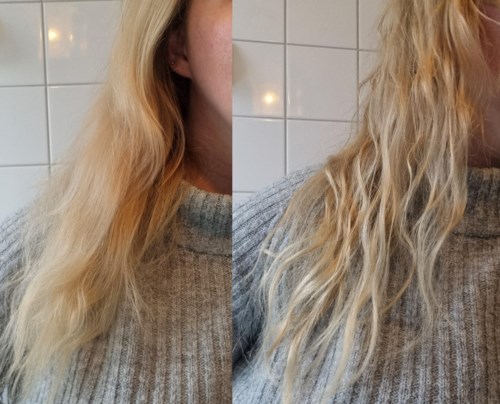 2) Mellan de dagar du tvättar håret: Spreja på torrt hår, krama in i håret och låt torka.