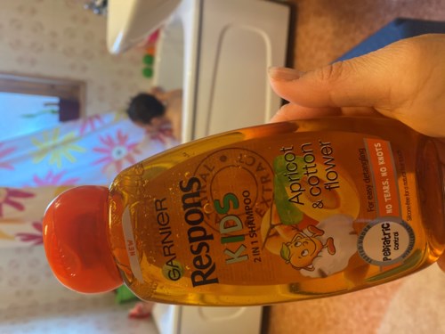 Kids 2-in-1 Shampoo Apricot & Cotton Flower. Garnier Respons har utvecklat ett mjukt och härligt schampo för barn som rengör håret omsorgsfullt, gör det lätt att reda ut och gör badet till en skön stund. Schampot är berikat med aprikosextrakt som är känt för sin behagliga doft samt bomullsblomma som är känd för sina lugnande egenskaper. Resultat: Håret är lätt att reda ut, känns mjukt och ser strålande ut. Efterlämnar håret med en härlig aprikosdoft.