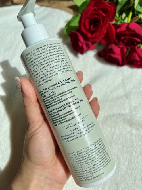 Som Lykoinflutester fick jag i uppdrag att testa tre produkter från märket Hagi som kommer från Polen! Här kommer nu mina tankar och upplevelser om Hagi Natural Probiotic Ultra-Soothing Body Yogurt Berry Love 200 ml! Lite om min kroppshud: normal/kombinerad hud, inga större problem med torrhet men min kropp mår bäst och håller sig finare med fukttillförsel! Kan ibland bara känslig! Förpackningen med pump är praktisk! Enkel, fin och lätt att trycka ut formulan! Finns även en spärr att stänga till så inte formulan trycks ut oönskat! Formulan har en lätt konsistens, härlig fin rosa nyans, doftar somrigt, mycket och sött fruktigt bärigt! Sjunker in fint i huden vid applicering! Inget kladd! Och min hud upplevs återfuktad mjuk len! Jag har använt denna yogurt mest på benen och rumpan då jag föredragit Hagis Body Balm på överkroppen då den har en lite mildare mjukare doft! Då jag upplever doften lite skarp drar det ner betyget med en stjärna! Annars gillar jag denna body yogurt fullt ut! Vegan! #LYKOINFLUTESTER #HAGI9409 visningar- Användarens roll: Lyko Creator.Kommentaren lades 1 årTack underbara @Jessica och @Charlotte ni är fina Kram💖🤗2 gillar