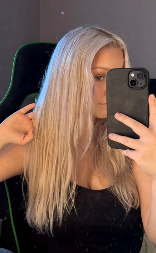 Det känns som att blont hår skulle luta mer mot grönt än silver efter detta. Färgen ser också mer blå ut än violett direkt från flaskan. Kanske var mitt hår för gult för detta😅😂11 visningar- Användarens roll: Kundtjänst på Lyko.Kommentaren lades 1 veckaHej Sonja, Tack för din recension! Det är så tråkigt att höra att produktens färg inte har varit lämplig 🩷 Ju blåare schampot är, desto mer effektivt neutraliserar det mörkare gula och orange nyanser (det fungerar med komplementfärger). Om ditt hår är ljust och bara lite gult kan ett violett-baserat silverschampo fungera bättre! Du kan också prova att späda ut denna produkt lite med din vanliga balsam (kom ihåg att blanda blandningen ordentligt innan du applicerar den i håret), så att det finns mindre blått pigment i produkten! Detta kan hjälpa med resultatet 😊 Om det behövs rekommenderar jag att du konsulterar din frisör för att hitta den bästa produkten och färgen! Ha en härlig dag och en underbar julförberedelse 🧑🎄1 gillar