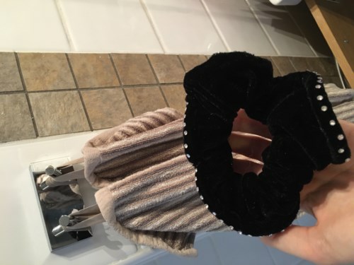 En svart sammet scrunchie med kristalldetaljer för en festligare look