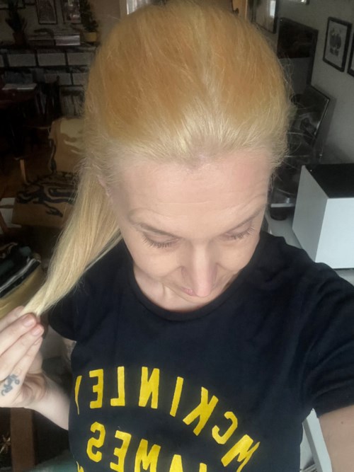 Köpte Schwarzkopf Palette Intensive Creme Coloration 7-0 Ultr Int Lightener då min vanliga färg 9-1 diamond blond var slut. Nu vart jag verkligen helgul i håret och måste färga om det, kan jag då färga över direkt med ny färgnyans eller kommer det förstöra mitt hår helt? Måste räddas från detta gulblekta missöde😭🫣1 produkt i inlägget Blondering gone wrong116 visningar - Inlägget skapades 1 veckaBetyg: 5 av 5Verifierad köpare