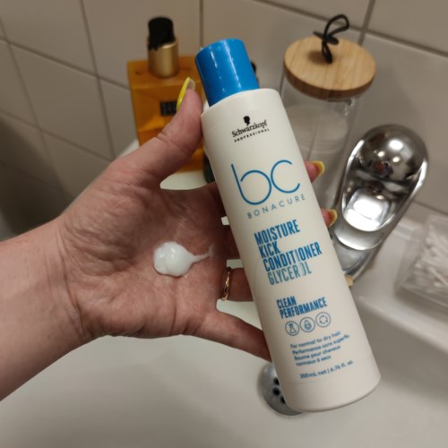 Jag har testat Schwarzkopf Professional BC Bonacure, Moisture Kick Conditioner Glycerol Utseende Flaskan har ett enkelt utseende som inte väcker någon särskild uppmärksamhet. Balsamet är krämigt och vitt. Flaskan är mindre än schampoflaskan i samma serie, vilken jag också testat. Funktion Flaskan har en kork som trycks ned åt ena hållet och innehållet är lätt att dosera. Flaskan är smal och nätt så den är lätt att hålla även med våta händer. Produkten går lätt in i håret. Jag balsamerar bara längderna och låter det sitta i ca 5 minuter. Den är lätt att skölja ur. Gör produkten det den lovar? Mitt hår är tunt och lockigt, där av lite frissigt och torrt i längderna. Produkten utlovar återfuktat hår utan att tynga ner, att håret blir mjukt och följsamt samt med lyster och spänst. Håret är lätt att reda ut efter tvätt och känns inte tungt. En viss lyster kan jag se, men mer spänst har jag inte kunnat känna. Doft Den doftar milt och lyxigt. Jag tycker att doften på balsamet är något lite ”djupare” än doften på schampot i samma serie. Summering Jag har ett knepigt hår och har problem med att hårbotten lätt blir fet och längderna torra. Detta balsam fungerar bra för mina längder. Det mjukgör och reder ut utan att tynga ner. Produkten är dryg för mig med tunt hår och kommer sannolikt räcka lika länge som schampot. Jag kan tänka mig att fortsätta använda detta balsam! #schwarzkopfprofessional #lykotestpilot1 produkt i inlägget Mjukgörande men ej nedtyngande496 visningar - Användarens roll: Lyko Creator.Inlägget skapades 3 årBetyg: 4 av 5