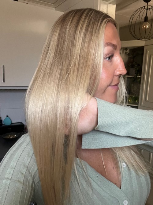 Jag har använt just denna inpackning för så många år som helst att få bort gult från både eget hår och från löshåret. Varit en riktig favorit, Nu har dom absolut ändrat och förstört denna! Både mina egna hår och löshåret blir rosa!!! Alltså, räcker om jag har den in 3 minuter. Om jag håller länge som jag gjorde alltid med den i gamle förpackning, så blir håret nästan rosa /lilla /blå blandning 😅😅😅😅🤯🤯🤯 Jag har prövat alla möjliga sätt. Använt djuprengörning innan och vanligt schampo men resultatet blir fortfarande rosa. Så en till bra produkt som inte längre existerar 😡🤯🤣 Måste också tillägga att tuben inte hade den lilla plastbiten man ska dra bort för att öppna. Tyckte det var en ening konstigt.1091 visningar- Kommentaren lades 8 månaderHej Kirsti, Det låter som att du tidigare använt vår silverinpackning Color Refresh Treatment, som nu har utgått ur sortimentet. Den har ersatts av Cool Blonde Coloring Silver Hair Mask, och skillnaden mellan dem ligger just i pigmenten. Den tidigare inpackningen innehöll mer blå pigment, medan dagens version innehåller mer violetta pigment, vilket kan ge ett annorlunda resultat – särskilt om ditt hår har ljusa eller varma undertoner. Det kan vara en förklaring till att du upplevt en rosa ton efter tvätt. Vi uppskattar verkligen att du delar med dig av din upplevelse – din feedback är viktig för oss! Tveka inte att höra av dig om du har fler frågor 💜 / Hanna, Björn Axén1 gillar