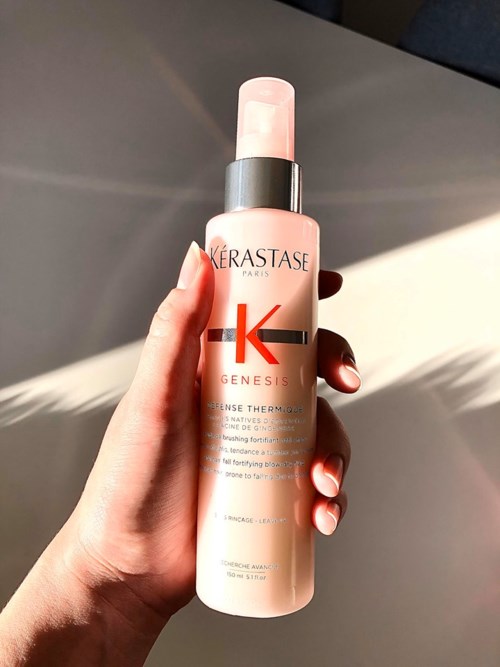 Anti Hair-fall Fortifying Blow-dry Fluid för försvagat hår som lätt drabbas av håravfall på grund av brutna hårstrån. Den mjölkaktiga formulan skyddar håret mot att brytas av och ger en optimal återfuktande effekt utan att håret blir frissigt eller tyngs ner. Kérastase Defense Thermique är berikad med en kombination av edelweiss-celler och ingefärsrot och återfuktar och stärker håret samtidigt som det skyddas mot värme upp till 220 °C för att minska risen för håravfall på grund av brutna hårstrån. Håret blir glansigt och mjuk med en silkeslen känsla.