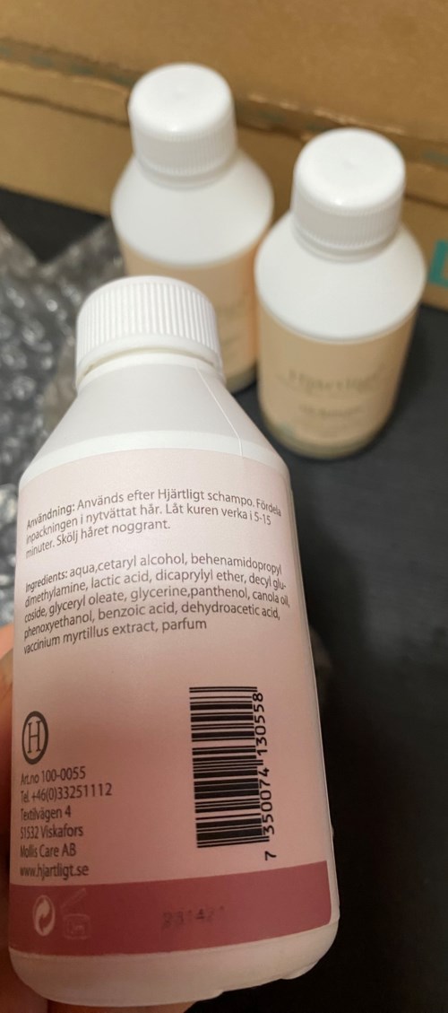 Hjärtligt® Ekologisk Hårinpackning en fuktigvande inpackning som återuppbygger och mjukgör hår- och hårbotten. Med en mild, krämig formulering återfuktas håret på djupet. Det efterlämnas mjukt och glansigt med en silkesmjuk känsla helt utan silikoner. Motverkar frissighet och statiskt hår. Passar de flesta hårtyper, även färgat och behandlat hår. Producerade och utvecklade i Sverige med omtanke om dig, mig, och miljön. Ekologisk rapsolja från Österlen Svenskt blåbärsextrakt Mjölksyra Panthenol, Glycerin Producerad i Sverige för din min och miljöns skull. 100 % biologiskt nedbrytbar med Bara gröna ingredienser. Fri från: Parabener, Silikoner, Mineraloljor, Hormonstörande ämnen, PEG/PPG, Eteriska oljor, Citrus och Nanopartiklar, mikroplaster. 250ml Min upplevelse: Återfuktar bra och gör håret väldigt mjukt. Ingen irritation. #lykoreview1 produkt i inlägget Hjärtligt Hårinpackning 250 ml586 visningar - Inlägget skapades 3 årBetyg: 5 av 5Verifierad köpare