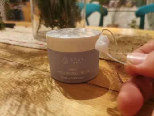 Jag har fått nöjet att pröva #StayWell Triple Hyaluronic Acid Cream som #Lykoinflutester Lite kort om min hud: 27 år gammal Kombinerad hudtyp Mild Akne Här kommer mina tankar om följande produkt: Stay Well Triple Hyaluronic Acid Cream kommer i en lättviktig plasttub i fin ljusblå färg. I paketet följer en spatel med. Produkten har en vattnig gel konsistens och doftar friskt och härligt. Doften påminner om parfymer med namnen “aqua” i sig som gillas starkt! 💧❤️ Jag blev lite fundersam när jag såg att krämen innehöll små blåa kulor och prövade då först produkten på handen. De små blå kulorna fungerade som en liten mini massage och absorberades snabbt in i huden. Krämen applicerades utan ansträngning. Resultatet blev en mjuk och glowy hud! Jag kände effekt direkt efter appliceringen. Jag har inte fått några breakouts av produkten. Sammanfattningsvis tycker jag att Stay Well Triple Hyaluronic Acid Cream är en härlig produkt med bra konsistens. Den doftar bra och är dryg. Ett plus för att det medföljer en spatel för en mer hygienisk applicering. De små blå kulorna är en rolig twist på en vardagskräm. Produkten är definitivt prisvärd och är dessutom vegansk! Värt att pröva för alla er som är nyfikna på något nytt. Rekommenderas! - Inlägget skapades 1 årBetyg: 4 av 5Verifierad testare