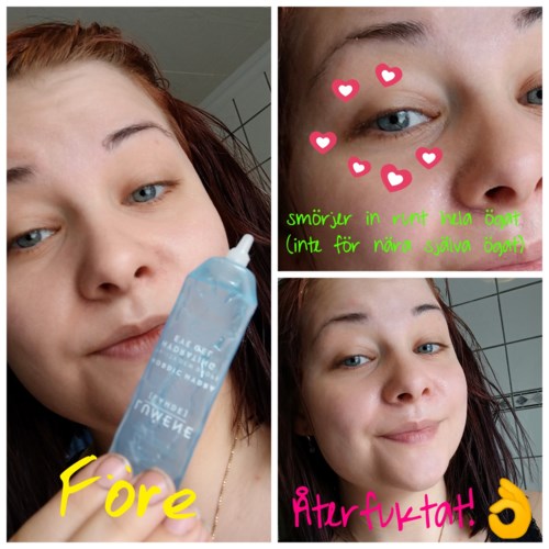 En dryg gele som återfuktar utan att göra ögonen svullna efteråt (vissa ögonkrämer har en tendens att ge påsar under ögonen) känns skön på huden och sjunker snabbt in. Jag har känsliga ögon och känslig hud runt ögat och har aldrig blivit irriterad av den. För att få en mer vaken effekt kan den förvaras i kyl. Enda anledningen till att den inte får högsta betyg är att jag inte tkr den gör något för att förbättra ögats tunna hud över tid, hade önskat viss antiage funktion med den. #tävling - Inlägget skapades 4 årBetyg: 4 av 5Verifierad köpare