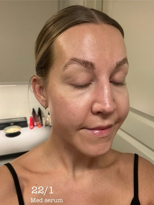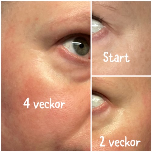 Jag har i egenskap av #LYKOINFLUTESTER fått pröva detta serum från #DERMALOGICA 🩵 Jag är 40 år gammal, har ljus känslig hy. Får någon enstaka hormonfinne den tiden i månaden, och min hud kan bli väldigt torr speciellt på vintern runt munnen, men jag har lite fetare t-zon. Detta serum kommer i ytterkartong, innerkartong, och en snygg stilren flaska. Själva flaskan är nog gjord av glas, och korken av plast. Serumet är vitt till färgen, men med en lite geléig konsistens, den lämnar ingen vit hinna. Det står 2-3 pumpslag på flaskan, och då räcker det gott och väl till hela ansiktet, hals och dekolletage. Väldigt neutral doft och inget man reagerar på. Jag har aldrig prövat kollagenprodukter tidigare. Eftersom jag vet att min hud är känslig vande jag in min hud de första 6 dagarna med att bara använda produkten på kvällen, och sedan morgon och kväll. Jag har inte fått någon sveda eller rodnad av produkten. Jag börjar med de två negativa sakerna kring detta serum: Redan efter en vecka började massa små finnar dyka upp, mest i pannan, och efter två veckor efter användning morgon och kväll fick jag även stora finnar främst på och runt hakan. Jag bytte då till att bara använda produkten på kvällen, dels för finnarna men även för det som också är en nackdel med produkten, nämligen att den korvar sig mycket under makeup. Även om man tagit väldigt lite produkt korvar det sig, och all form av foundation, cremepuder eller puder är svårjobbat ovanpå produkten. Även om det känns som att den går in och jobbar bra i huden, så ligger det uppenbarligen något kvar som gör det smått omöjligt att få till bra makeup ovanpå. Efter ett tag med bara applicering på kvällen lugnade finnarna ner sig litegrann. Jag skulle däremot vilja kunna använda det på morgonen med, för nu kommer vi till det positiva: Huden blir väldigt plumpad och fin, får en härlig lyster och känsla 👌🏼 Jag kan hoppas att efter en längre användning så min hud helt vant sig, och jag förhoppningsvis slipper finnarna helt, så behöver man knappt några täckande produkter ovanpå! Jag tänker att denna blir helt perfekt till sommaren när man är lite brun och känner mindre behov av täckande makeup ☀️ Jag har även sett skillnad på mina fina linjer främst runt ögon men även i pannan! Se bild med jämförelser. Sammantaget verkar denna bra på ålderstecken, ger en fin plumpad hud med härlig lyster! Det som drar ner betyget för min del är hur den funkade under makeup, samt alla finnar jag fick av den. Jag kommer garanterat fortsätta använda den, kanske var tredje dag nu när testperioden är slut. Slutar jag få massa finnar kommer jag garanterat köpa igen till sommaren, då jag också slipper ha makeup över, så kommer den till sin allra fullaste rätt känner jag! För att motverka ålderstecken rekommenderar jag den starkt! Vet du dock med dig att du har den typ av hy som brukar bryta ut i massa finnar för nya produkter finns det kanske någon annan produkt som passar dig bättre att pröva först. Har du en hy som tål det mesta så KÖP! 🤩 - Inlägget skapades 1 årBetyg: 4 av 5Verifierad testare
