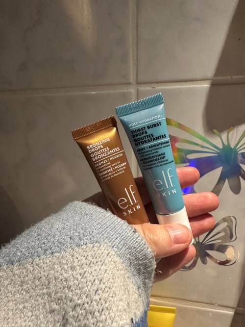 - Innehåller e.l.f.s nya Holy Hydration! Thirst Burst Drops och Bronzing Drops (Pure Gold)