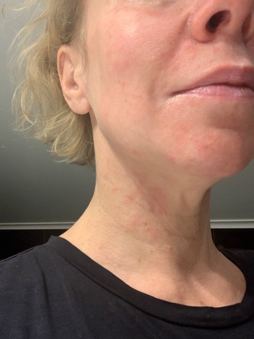 Jag har nu använt det här serumet i över en månad. Tar 2-3 droppar var tredje dag efter min ansiktsmist. Första 2-3 gångerna hände inte så mycket, men sedan fick jag en reaktion (se bild) som höll i sig ca 1 dygn. Det sved lite lätt, men inte särskilt obehagligt. Eftersom den innehåller retinoider så är det inget konstigt. Huden behöver vänja sig och det är snarare ett tecken på att ämnena i serumet går ner i huden och verkar. Fick reaktionen två gånger och efter det har det inte hänt igen. Jag tycker att min hud nu känns piggare än på länge. Smart förpackning med droppflaska gör att man kan ta så mycket eller lite man vill. För mig blir det ca 6 droppar i veckan vilket gör den väldigt dryg och därför har jag inget att invända mot priset. #LYKOMISSION - Inlägget skapades 3 veckor