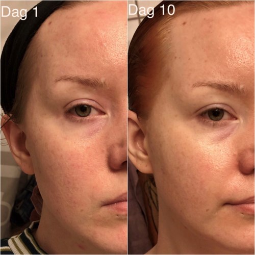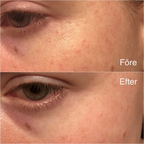 Det står i texten ”en produkt som till och med korrigerar din hudton och ger massor av fukt, som är idealisk att använda under de växlande årstiderna och under perioder av stress eller trötthet”. Jag har under de 10 dagar jag använt serumet haft det stressigt och varit väldigt trött. Ingen direkt årstidsväxling men vädret har varit som allt mellan tidig vår och den varmaste & fuktigaste sommardagen! Lite fundersam var jag över hur 10 dagar skulle kunna göra någon skillnad på mina stora porer, rynkor i pannan, pigmentfläckar och allmänt glåmig hud! Men den klarade mycket av det! 💪🏽 den största skillnaden är hudtonen, den har blivit jämnare och jag tycker det är ganska stor skillnad! Jag har en större pigmentfläck som jag har använt som måttstock och den är aningen blekare och mindre skarp i kanterna. Jag upplever att hudtonen som helhet blivit jämnare, de områden jag använde den gröna concealern på förut behöver jag inte längre, eller mindre av på en del ställen. Porerna har blivit mindre och det är det viktigaste för mig då jag har haft komplex för det sen jag var i tonåren, och fortfarande har. Så att hitta en produkt som faktiskt gör porerna mindre är jag villig att betala lite mer för! Konsistens är som en blandning mellan gel och ”vattnig” och den har en mild citrusaktig doft. Tyvärr tycker jag att den är för klibbig och det tar lång tid innan den absorberats! Jag hade svårt att få till före- och efterbilder som gör skillnaden rättvisa, men skillnad är det! #filorga #lykoinflutester - Inlägget skapades 4 årBetyg: 5 av 5Verifierad testare
