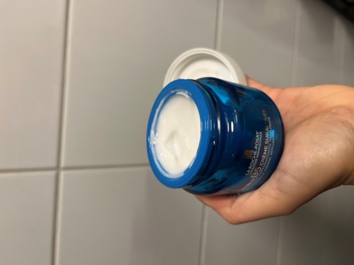 Jag har fått prova denna krämen i någon vecka och jag gillar den mycket! Den kommer i en fantastisk fin blå glasburk. Jag älskar att det går att köpa refills för att spara burken. Det är fint och lyxigt med en glasburk😍 Jag har en normal/oljig hudtyp och jag kan använda denna krämen trots att den känns ganska fet. Den sjunker in fint i huden utan att lämna en kladdig eller fet hinna. Den är parfymerad så för dom som ej gillar parfym i hudvård så kanske den inte passar. Men jag gillar att mina krämer doftar gott och denna luktar precis lagomt! Den ger verkligen återfuktning och smörj på djupet! #lykoinflutester #larocheposay132 visningar - Användarens roll: Lyko Creator.Inlägget skapades 6 dagarBetyg: 3 av 5Verifierad testare