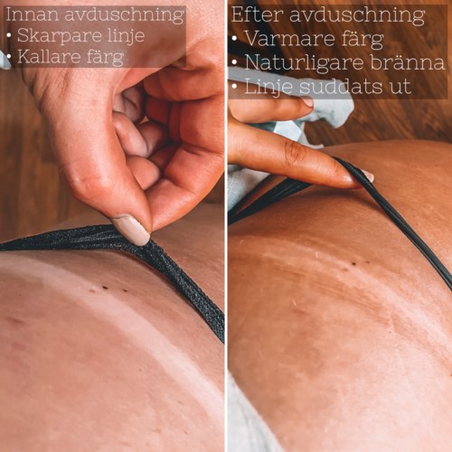 Som #lykoinflutester har jag testat denna BUS i färgen medium. Jag är en flitig användare av BUS och brukar använda mig av Tanify & Tanrevel till ansikte & kropp. Innan jag testade denna har jag skrubbat hela kroppen & ansiktet och återfuktar väl. Då min uppfattning om denna BUS ändrades drastisk med tidens gång väljer jag att recensera i olika områden, häng med! Doft: ☀️☀️ Vid applicering luktar den kokos och supergott, tyvärr avtar doften fort och den klassiska BUS-doften kommer fram. Applicering: ☀️☀️☀️☀️☀️ Så härlig och bra mousse att applicera, den lägger sig otroligt fint på kroppen och går att jobba mycket med innan den torkar in. Den är färgad så man ser vart man lagt färgen, dock mörknar den efter en stund så den är fortfarande ganska ljus vid applicering. Kladd & avfärgning: ☀️☀️☀️☀️☀️ Jag trodde det var ett skämt men icke, denna färgade 0 av sig på mina ljusa lakan när jag sov med den, heja heja! Resultat: ☀️☀️☀️☀️ Jag som brukar använda ”extra dark” vid BUS var skeptisk till att medium skulle funka för mig, men denna färg blev så fin. Otroligt jämt och en naturlig bränna än dock liiiite orange för mig smak men eftersom den inte är så mörk känns den mer gyllene. Hållbarhet: ☀️ Här kommer den knappt upp i 1 poäng... trots påfyllning över hela kroppen efter 2 dagar så fallerade det. Fläckar i armhåla och armar, fula fotknölar och färgen i ansiktet helt borta. Jag har gått osminkad och endast tagit mig till affären en gång under tiden. Denna är fin för 1, max 2 dagar, sen fallerar den och här tappar den i betyg. Jag tycker ändå att den ska hålla längre när man ändå bara går hemma, hade jag jobbat & tränat med denna hade det nog sett ännu värre ut! #GLÖD #lykoinflutester