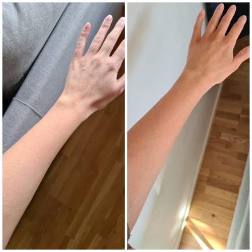Här kommer en annan #lykoinflutester recension!😉 Jag fick äran att testa något, som för mig är, något helt nytt nämligen #Glöd’s self tan mousse i nyans Medium. ☀️ Till en början var jag väldigt skeptisk till hur resultatet skulle bli eftersom jag är väldigt blek av mig. Därav har jag enbart testat på mitt vänstra ben...😅 Appliceringen var väldigt lätt, tack vare deras velvet-handske. Det bara gled och kändes typ återfuktande. Ska vara sagt att denna produkt innehar en, för mig, stark doft av kokos. Jag är inte allt för förtjust i starka dofter då jag har allergier och även arbetar i en miljö där det ej är tillåtet med starka dofter. Men jag upplevde att det försvann relativt fort. Direkt efter appliceringen så märkte jag inte en stor skillnad, och tänkte ”jaha, medium kanske fungerar bra för blekfisar som jag?”. Den bilden där man ser båda mina ben är tagen drygt 8h efter appliceringen. Den andra bilden, som är enbart visar vänster lår/vad, är tagen morgonen efter appliceringen och ja... nog blev man brun 😂 Summan av kardemumman: För er som gillar att vara gyllenbruna - kan vara värt att testa denna produkt. För mig, som inte solar aktivt för att bli brun utan är mer bekväm i sin hudnyans - inte något måste att testa.1772 visningar - Inlägget skapades 4 årBetyg: 5 av 5Verifierad testare
