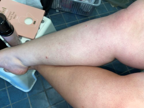 Sist jag använde brun utan sol var typ 15 år sen: Kräm, med händerna, på förmodligen torra ben – resultatet DÅ blev orange & fläckigt. Så, hade den skräckbilden i bakhuvudet när jag testade denna mousse från Glöd... (Peelade och/eller rakade benen dagen före alla gånger, samt smörjde med HTH Original) • Omgång 1 (höger ben) blev mest bara ”meh”. Gjorde drag nerifrån & upp, men var nog snål med mängden (2-3 pump). Blev knappast solkysst, mest bara.. inte rosa. 🤷♀️🐷 • Omgång 2 (vänster ben) gick bättre, gjorde cirkelrörelser med handsken istället, och använde fler pump, vilket verkar ha tagit bättre. • Omgång 3 (båda) smörjde jag benen även med jojobaolja tidigare på dagen, vilket helt klart hjälpte kring fotknölarna & i knävecken senare. Att moussen är pigmenterad så det syns var den applicerats känns bra. Kokosdoften försvinner rätt snabbt (men kommer tillbaka svagt under utvecklingen för mig). Torkar in i huden snabbt, så jag har inte märkt nåt fläckigt tyg nånstans. Sitter i några dagar, och försvinner jämnt. Hade inte förväntat mig bränna som att jag stekt på rivieran, så för mina lysrör till ben känns det alldeles lagom! Fin, solad nyans utan att slå över i orange, eller fläckar. ✨ Kommer helt klart använda den här (dagen innan) om jag ska iväg på nåt skoj, barbent, och inte vill blända folk 😎 #glöd #lykoinflutester - Inlägget skapades 4 årBetyg: 3 av 5Verifierad testare