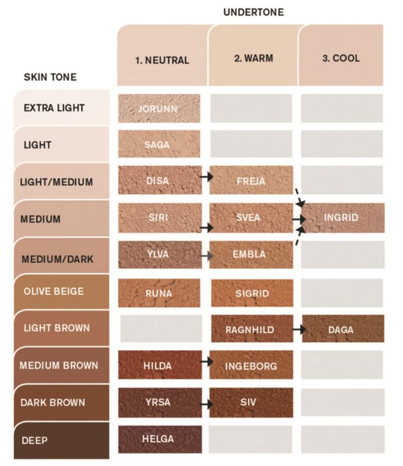 En högpigmenterad, silkeslen och mjuk formula för en naturlig finish.IDUN Minerals Foundation känns och ser ut som ett puder, men är krämig vid applicering. Mineralerna smälter lätt in i huden och ger ett jämnt och fint resultat. Idun Minerals foundation är vattenavvisande och sitter där den ska hela dagen. Hudens underton avgör vilken foundation som passar bäst. Om undertonen är åt det gula/gyllene hållet kallas det varm underton. Om undertonen däremot är åt det rosa hållet, så kallas det kall underton. Vanligast är varm underton.