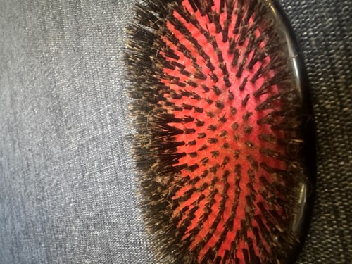 Första intryck var att det var en väldigt trevlig borste som gjorde mitt hår glansigt och fint - men märkte direkt att för varje gång blev den sämre och sämre. Svinborsten sitter inte fast på nått sätt i ”kudden” den sitter i utan åker rakt in till baksidan av borsten. Man kunde dra tillbaka upp varje svinhår igen men många lossnade då och för priset förväntar man sig att inte behöva ”laga produkten” efter varje användning