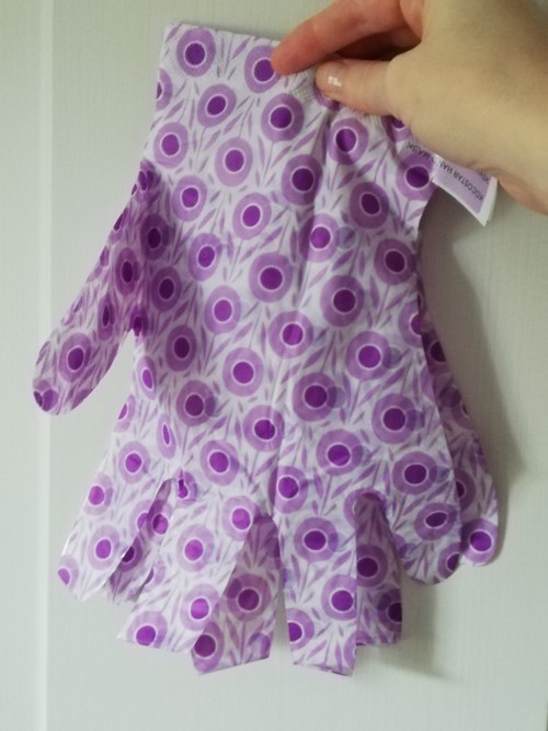 Användning: Sätt handskarna på rena och torra händer och dra åt med hjälp av klistret. Låt verka 20 minuter. Tack vare materialet kan du använda din smarttelefon samtidigt. Behöver inte sköljas.