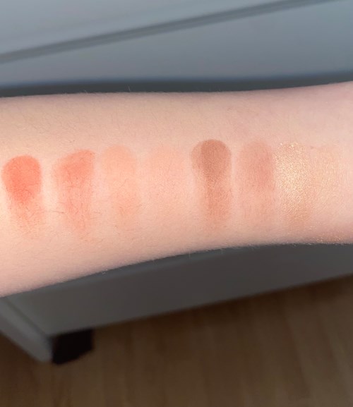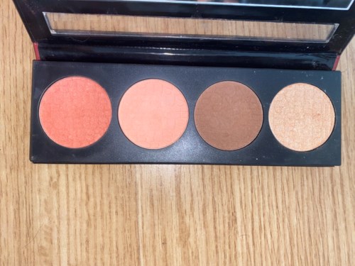Vänster- finger Höger- borste Blush-blush-bronzer-highliter Den mörka blushen är en korall färg, det andra är väldigt ljus syns nästan inte på min hudton, bronzern är bra, brun, highlitern är inte perfekt för min hudton eftersom den är guld, men fin. Funkar som ögonskugga! #tävling1 produkt i inlägget Bra642 visningar