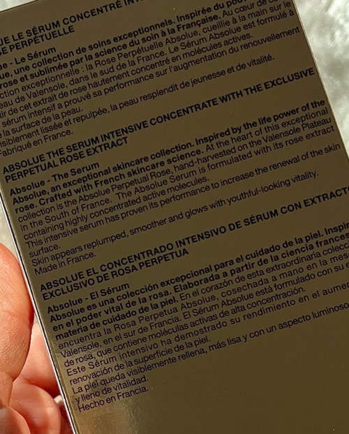 Serumet innehåller exklusivt ros extrakt från handplockade rosor, som växt i soliga södra Frankrike. Genom att kombinera de bästa delarna av rosen, från stjälken till blomman, erbjuder Lancôme en effektiv kombination av aktiva ingredienser för en hud som ser ynger ut.