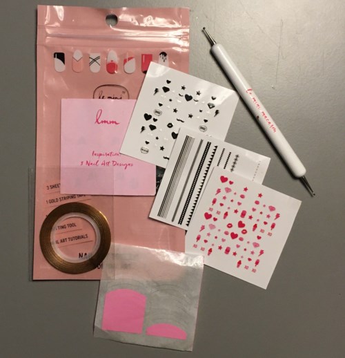 Detta Le Mini Macaron Nail Art Set kan jag varmt rekommendera för kreativa skapelser av naglar! Jag tycker det är ett bra kit med en grund att skapa vidare på! Har testat allt i Kitet och här kommer nu min recension! * Stampingplattorna med olika självklistrande mönster, symboler är festliga i färgerna vit, rosa, svart! Lätta att applicera med pincett vilket jag gjort för precision. Därefter ett BRA toplack så att de sitter snyggt kvar👍🏾. * Guldfärgadnageltejpen är otroligt fin och den har jag använt både som den är och även som tejp till att skapa ränder på mina Polkagrisnaglar, dock har jag målat över den då jag inte önskade guldfärg, målade annan färg över och därefter drog jag bort tejpen för att få mina vita ränder! * Franska tipparna har jag använt till valfritt mönster och öven till tippar! Lätta att applicera och att ta bort. Visa har jag använt flera ggr. Vid mönster har jag även klippt och delat dem! * Dotting Tool med små bollar i båda ändar, olika storlekar! Himla fräckt verktyg! Jag brukar lägga lack på ett plastlock och sen doppar jag toolsen i det för att sen pricka på nageln. Då kan man också ha fler färger på samma gång om man önskar ...att de blandas lite, snyggt! * Ark med 3 guider medföljer. Ni kan se mer på min Profilsida, enkel nageldesign😊💅🏽! #NailsByAka
