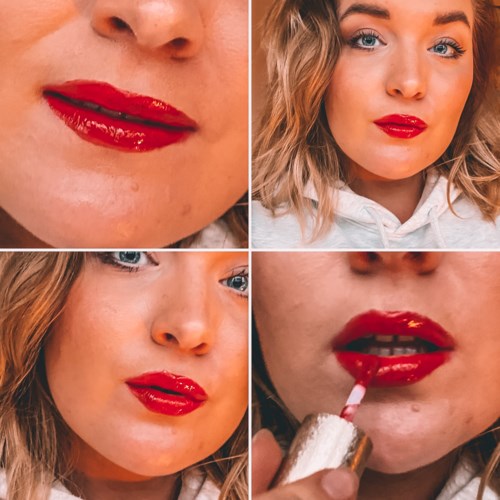 Jag har fått äran som #lykoinflutester att få prova på några produkter från #lhcosmetics och detta läppstift är en av dom! Detta läppstift ger verkligen den ultimata red, glossy, plumping effect man vill ha i ett rött läppstift och det är verkligen så snyggt! Detta är det absolut i särklass bästa och snyggaste rött läppstift jag någonsin haft på mig. Det håller en hel kväll utan att matta ner sig och det känns så mjukt och skönt på läpparna. Många flytande läppstift kan kännas torra på läpparna och lämna dom lite fnasiga, men detta gör läpparna mjukare och lena. Dessutom är det otroligt fint att ta en liten ”klutt” och lägga på kinderna som rouge och blenda ut innan man säger sminket med puder! Multifunktionellt yaaaas 🙌🏼 Det som gör att den inte får toppbetyg är att den är lite kladdig och svår att applicera, med fördel ska man lägga en läppenna under för att forma in läpparna då det är väldigt svårt att få till kanterna annars. På bilderna har jag utan läppenna, och det syns att kanterna inte är så skarpa. Då läppstiftet är så pigmenterat är det även svårt att jämna ut kanterna, så med bara läppstiftet kommer det inte upp i full pott. Men allt som allt, detta är DET läppstiftet man ska köpa om man vill ha de snyggaste röda läpparna!! #lykoinflutester #lhcosmetics