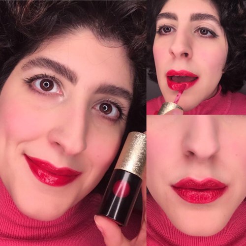 Jag är mycket nöjd med det här mångsidiga läppstiftet i färgen red latex, från #LHcosmetics! Färgen är klarröd och glansig och syns från långt håll, vilket jag älskar! Den är en jättefin kontrast till mina ögon och läppstiftet är extremt pigmenterat, så en liten mängd räcker väldigt långt (speciellt när jag använde den som blush!). Förpackningen är mycket fin, den är metalliskt röd och glänser i solen och ger en lyxig känsla. Detsamma gäller för behållaren som är stor och känns tålig, med guldglittrigt lock/applikator och svart behållare. Applikatorn är relativt kort och liten, vilket kan försvåra när man måste röra runt i behållaren innan applicering. Applikatorn är absolut inte dålig och är skön mot läpparna och smidig att hålla i, tack vare det breda handtaget. Däremot är den svår att använda i mungiporna pga sin fyrkantiga applikator som inte smalnar av mot toppen, och det kommer en del läppstift utanför, vilket är ett litet minus. Hade det varit lätt att få bort hade detta spelat mindre roll men tyvärr så lämnar det fläckar som inte går att få bort helt, vilket kan störa den petigaste. Det går att täcka med concealer men gör att området runt läpparna ser lite irriterat ut. Jag utgår ifrån att denna “staining”, har att göra med att den även kan användas som ögonskugga och rouge och därför måste ha lång hållbarhet, vilket den verkligen har! Färgen håller många timmar, trots att det är ett glansigt läppstift! Dessutom gör inte den långa hållbarheten att läpparna känns uttorkade, tvärtom. Det känns mjukt och behagligt på läpparna och är lätt att smeta ut, vilket är en fördel om man vill ha det som rouge. Sammanfattningsvis är det en produkt som är väldigt pigmenterad, känns återfuktande och håller sig länge, även om läpparna känns kladdigare än vad de är. #Lykoinflutester