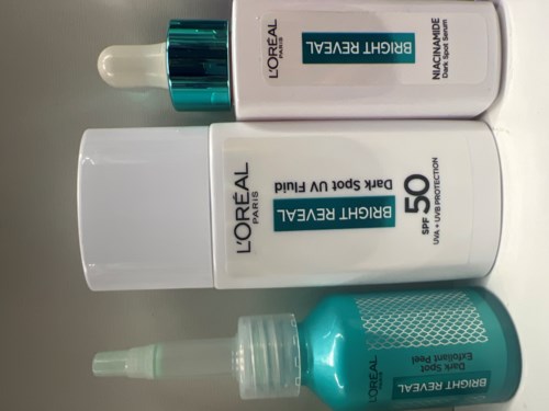 Fullända din hudvårdsrutin med Bright Reveal Exfoliating Peel och Dark Spot Serum.
