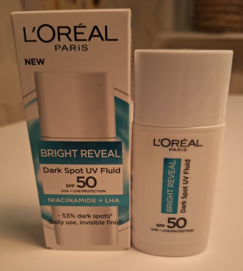 L’Oréal Paris Bright Reveal Dark Spot UV Fluid SPF50 är en lättflytande och fuktgivande dagkräm som förebygger solorsakade ålderstecken och skyddar mot uppkomsten av mörka fläckar. Kosmetokliniskt dokumenterad effekt: Efter 1 användning känns huden återfuktad och ser omedelbart mer strålande ut. Efter 1 månad är mörka fläckar synligt reducerade och huden är mer jämn, och efter 12 veckor är mörka fläckar reducerade med 53%*.