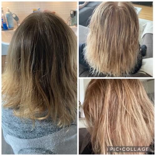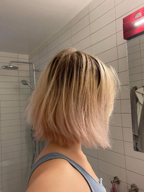 Jag hade egentligen tänkt bleka slingor och dragit slingor i hätta men fegade ur. Jag behöll singorna i hättan men hade en förpackning av L'Oréal Excellence 10u hemma och la i den i stället. 20min i utväxten och 10 min i resten. Utväxten ljusades upp lite (precis som bilderna på lådan), utan att bli gult, och eftersom övriga delen på slingorna redan var ljusblonda ser jag ingen direkt skillnad där. Fotot är taget efter "slingfärgningen". Den mörkare blonda färgen i vissa slingor på fotot är ungefär samma nyans som mer eller mindre hela utväxten hade innan. Jag är nöjd! (Hårfärg kan, som i detta fall, ljusa upp håret någon nivå men är ju inte som en vanlig blekning. Har du mörkt hår kan det bli lite gult så kolla färgrekommendationerna på lådan innan du köper den och var beredd med silverschampoo eller liknande utifall om att 🙂 Min favvo är Fanola no Yellow lyko.com/sv/fanola/fanola-no-yellowshampoo-350ml )1 produkt i inlägget Bra färg - Mest hjälpsamma negativaInlägget skapades 3 årBetyg: 1 av 5Verifierad köpare