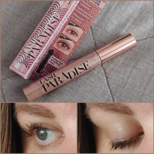 Lash Paradise Mascara i en limited editon med fin glittrig förpackning! Ta dina fransar till paradiset med Lash Paradise mascara som ger intensiv volym och spektakulär längd. Den supermjuka borsten täcker dina fransar i sammetslen formula som är berikad med ricinolja. Nu med ny och förbättrad formula som gör så att produkten håller längre. Passar för känsliga ögon.