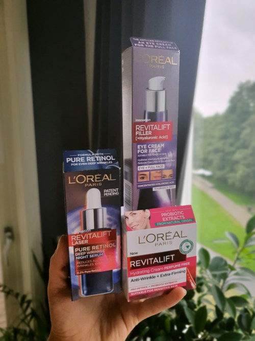 Som Lyko Influtester har jag testat dessa tre produkter från Loreal som en kombination: Loreal Paris Revitalift Filler [+HA] Eye Cream For face 30 ml Loreal Paris Revitalift Laser Pure Retinol Night Serum 30 ml Loreal Paris Revitalift Hydrating Cream Perfume Free 50 ml Denna recension gäller: Loreal Paris Revitalift Hydrating Cream Perfume Free 50 ml När det kommer till ansiktsvård är jag en slarver utan rutiner, för att min hy tillåter mig. Jag har alltid haft små porer. Jag har aldrig haft finnar och min hy kräver inte särskilt mycket omvårdnad. Vilket gör att jag ignorerar den tills den påminner mig om sin existens genom att den svider när den är för torr. Och när det händer så smörjer jag in mig. Jag gör också sheetmasks en gång i veckan. Eftersom att jag så sällan smörjer in mig så introducerade jag inte alla produkter samtidigt för att stega in de gradvis och göra en rättvis bedömning. Konsistensen på dagkrämen är lätt men krämig. Jag upplever den fräsch trots att den är parfymfri och jag förväntade mig att min hy skulle njuta av lite återfuktning. Men redan efter första appliceringen så smular krämen av sig istället för att sjunka in i mitt ansikte. Jag har laborerat med mängd, jag har låtit den dra in extra länge, har testat sminka ovanpå , testat applicera den på kvällen. Men varje gång ramlar den av i smulor. Vi var ingen kompatibel matchning helt enkelt. Det betyder inte att den kommer smula för alla. Och den tid den suttit kvar har den varit återfuktande, däremot ganska oljig och därför svår att kombinera med smink. Bifogar bilder tagna före och bilder tagna efter 4 veckors användning av alla tre produkter. Jag kan dock tillskriva dagkrämen ganska liten del av äran, eftersom den ramlat av innan det verkat färdigt. #loreal #lykoinflutester