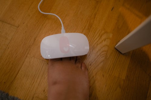 Anslut den medföljande sladden i ett USB-uttag och tryck på nagelnknappen ovanpå lampan. Placera handen under UV-ljuset. Vänta i 60 sekunder tills lampan slocknar automatiskt.