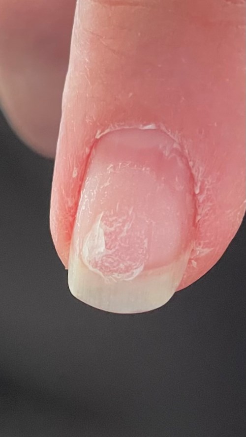 Innan du sätter på nya Layers skrapa bort nagelbandsrester från nagelbädden och fös bort/reducera nagelbanden. Se också till att naglarna är helt torra, detta för att undvika att det finns fukt kvar under nagelbädden eller att nagelbädden är mjukare än vanligt.