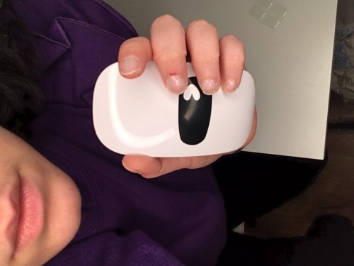 Placera dina naglar under UV LED-lampan, en hand i taget. Tryck på lampans överdel och ha kvar handen tills lampan släcks efter 60 sekunder. Lampan gör att materialet stelnar, vilket både ökar hållbarheten på manikyren och gör att naglarna får en vacker lyster. Tänk på att alla naglar måste in under lampan.