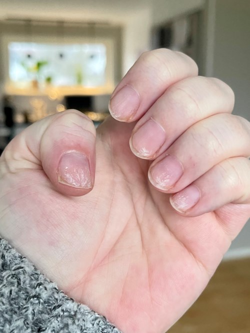 Innan du sätter på nya Layers skrapa bort nagelbandsrester från nagelbädden och fös bort/reducera nagelbanden. Se också till att naglarna är helt torra, detta för att undvika att det finns fukt kvar under nagelbädden eller att nagelbädden är mjukare än vanligt.